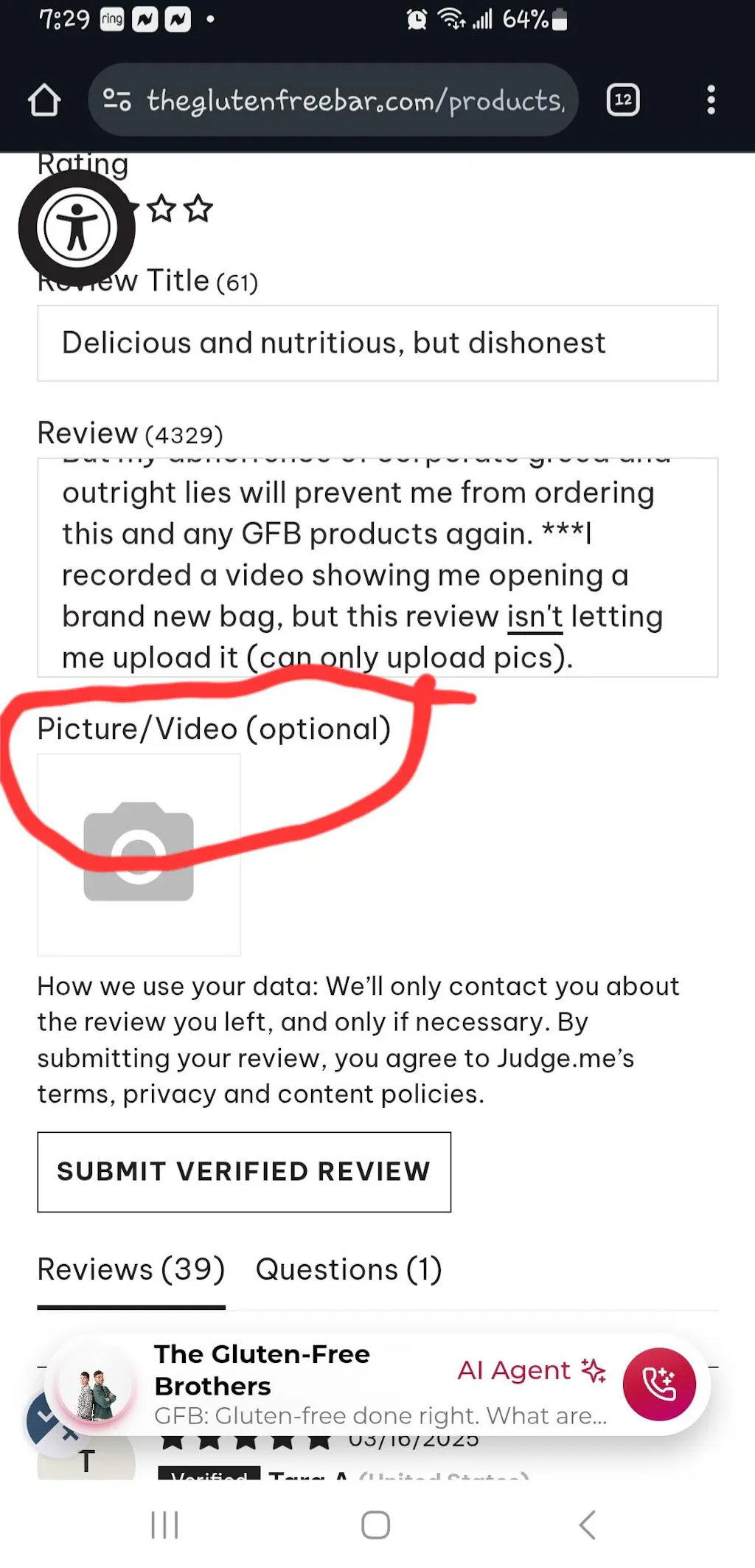 I absolutely love these bites. They taste great and the ingredients are clean. However, the nutrition facts state that there are 2 bites per serving and 5 servings per bag, which should equal 10 bites. But every single bag only contains 9 bites. I ordered these from Amazon as well as directly from the company website, and every bag had exactly 9 bites. If there were 10 bites in each bag, as advertised, I'd give them 5 stars. But my abhorrence of corporate greed and outright lies will prevent me from ordering this and any GFB products again. ***I recorded a video showing me opening a brand new bag, but this review isn't letting me upload it...even though it states "Picure/Video", it gives an error message stating I must choose an image when I try to upload the video. 🤔😒